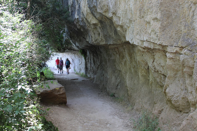 El pequeño pueblo poseía un PUERTO DE GABARRAS y, lo mejor, HICIMOS EXCURSION POR EL ANTIGUO CAMINO DE SIRGA, CHENIN DE HALAGE. Paralelo al río, con tramos estrechos excavados en la roca, luego boscoso, 4km hasta CIRC LA POPPIES, con una fuerte subida final. Hicimos su parte hasta el tramo boscoso y regresamos